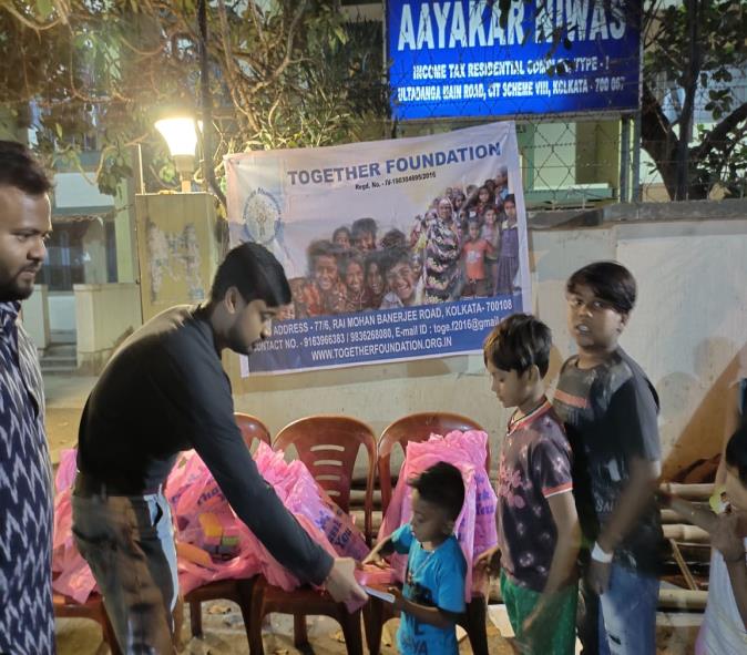 We were distributed 100 sharee to old village women and 100 cloths to children before 2020 Durga Puja at Kolaghat.